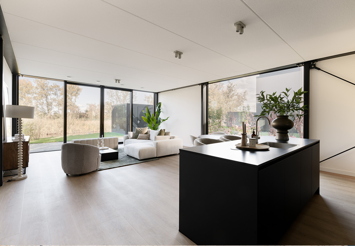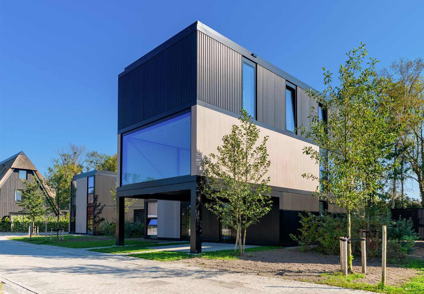Staal, zwart glas en daglicht vormen de basis voor deze spectaculaire villa’s van Courage architecten. De unieke architectuur sluit perfect aan op de groene, industriële omgeving van Het Kruitbos in Muiden. Elke villa is stijlvol vormgegeven, met verdiepingshoge ramen voor veel licht, prachtig uitzicht en een sterke connectie met de natuur.