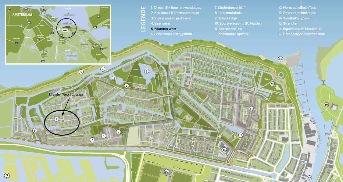 Staal, zwart glas en daglicht, deze elementen vormen de inspiratie voor de spectaculaire villa’s ontworpen door Courage architecten. De uitzonderlijke architectuur past uitstekend bij de prachtige locatie in Muiden, gelegen langs de oude transportsloten van Het Kruitbos tussen een oase van groen met een industriële historie. Elke villa heeft een unieke ligging en is stijlvol vormgegeven. Dankzij de verdiepingshoge ramen hebben de villa’s een zee aan licht, schitterend uitzicht en een optimale verbinding met de natuurlijke omgeving.