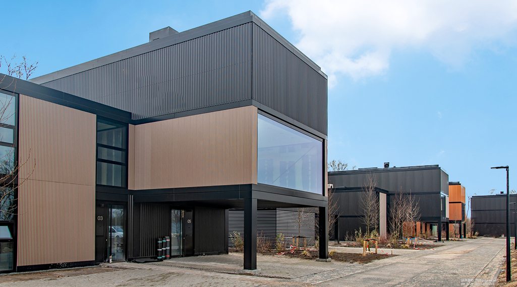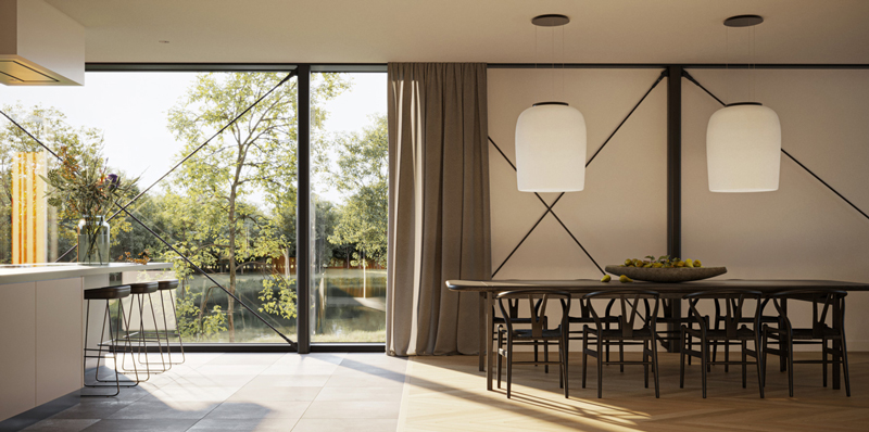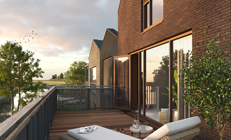Staal, zwart glas en daglicht, dat zijn de passies van architect Courage. De architectuur past uitstekend op de locatie tussen het groen met een industriële historie. Elke villa heeft een unieke ligging en is uniek vormgegeven qua materiaal en uitzicht. Dankzij de verdiepingshoge ramen hebben de villa’s ruim daglicht en contact met de omgeving. Toch zit je privé ten opzichte van de buren door de ontworpen afwisseling van dichte en open vlakken in de gevels. De villa’s liggen direct aan het vaarwater.